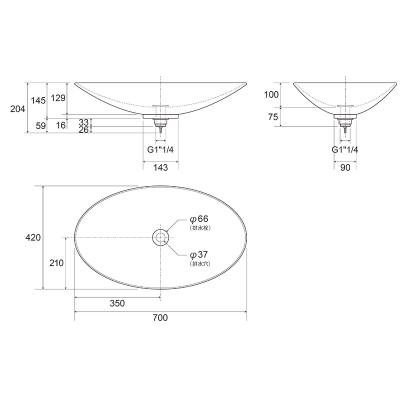 排水栓口径:G1"1/4