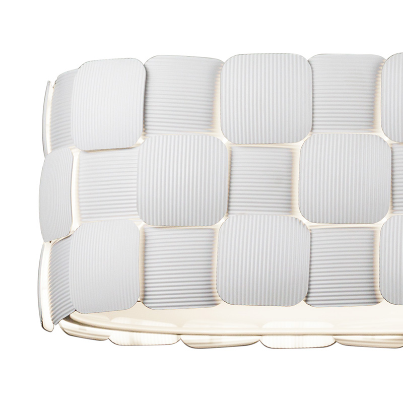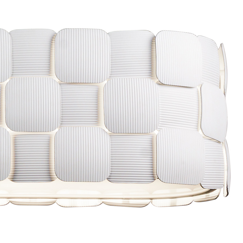 規則的に重なり合う白いプレートに、細かなギザギザを施した照明シリーズです。