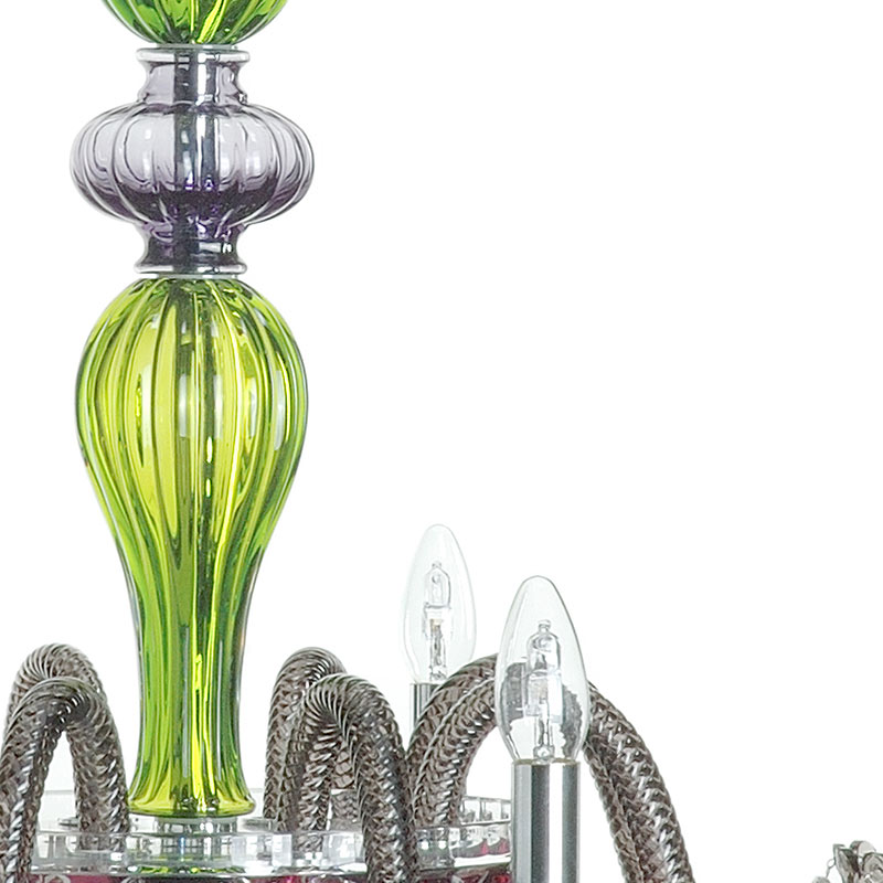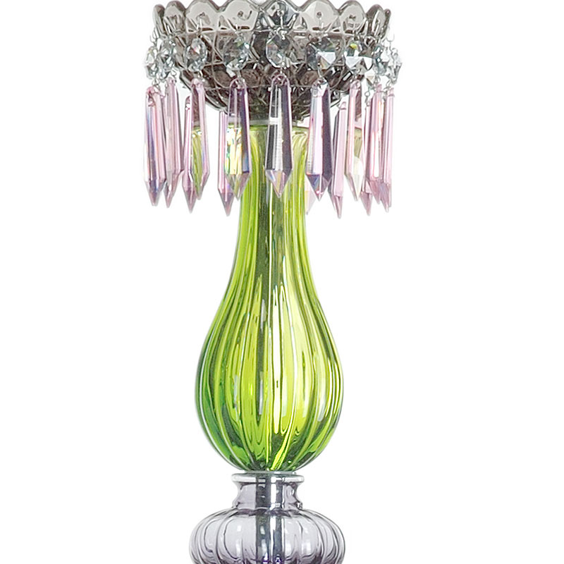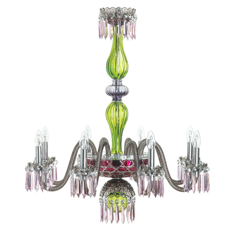 「アルルカン」とは、フランス語で道化師を意味します。道化師はピカソが好んで絵画のモチーフとして取り上げるなど、昔から芸術の対象とされてきました。サン・ルイの歴代のシャンデリアからインスパイアされたクラシックスタイルに、色彩と光で遊び心を加え、楽しげなムードを醸し出します。サン・ルイのフラッグシップカラーである、アメジストカラーとシャルトルーズカラーが配されたその姿はまるで、宝石に変身したアルルカンのよう。