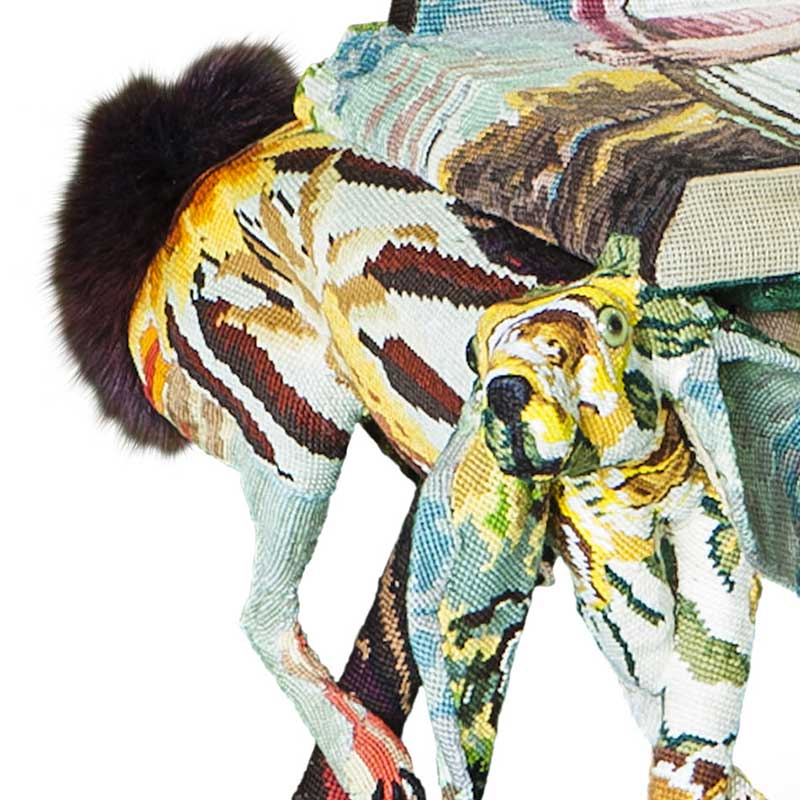 『FREDERIQUE MORREL(フレデリック・モレル)』は、亡くなった祖母のニードルワーク(針仕事)への想いから誕生しました。すべてニードルポイント刺繍(※注)のハンドメ イドで手掛けており、刺繍の色や柄は、世界中探しても同じものは他にない全てが1点ものの作品です。 フレデリック・モレルの作品それぞれには、深い意味とメッセージが込められており、例えば、刺繍で扉を描けば「人生の半分を通り過ぎた 」という意味が込められていたり、別の作品では愛と求愛がテーマだったり。避けては通れない人類と自然の関わりや、人間や動物にとっての幸福について追及 し、作品を通して「伝えたいメッセージを表現する」という、あたらしい創造に挑戦し続けました。