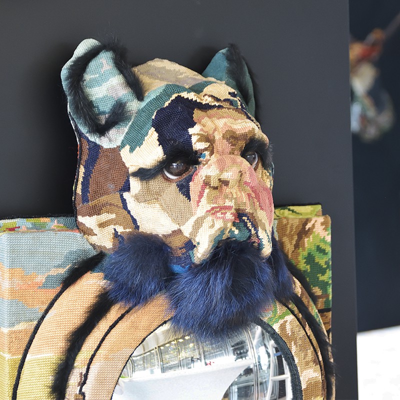 『FREDERIQUE MORREL(フレデリック・モレル)』は、亡くなった祖母のニードルワーク(針仕事)への想いから誕生しました。すべてニードルポイント刺繍(※注)のハンドメ イドで手掛けており、刺繍の色や柄は、世界中探しても同じものは他にない全てが1点ものの作品です。 フレデリック・モレルの作品それぞれには、深い意味とメッセージが込められており、例えば、刺繍で扉を描けば「人生の半分を通り過ぎた 」という意味が込められていたり、別の作品では愛と求愛がテーマだったり。避けては通れない人類と自然の関わりや、人間や動物にとっての幸福について追及 し、作品を通して「伝えたいメッセージを表現する」という、あたらしい創造に挑戦し続けました。