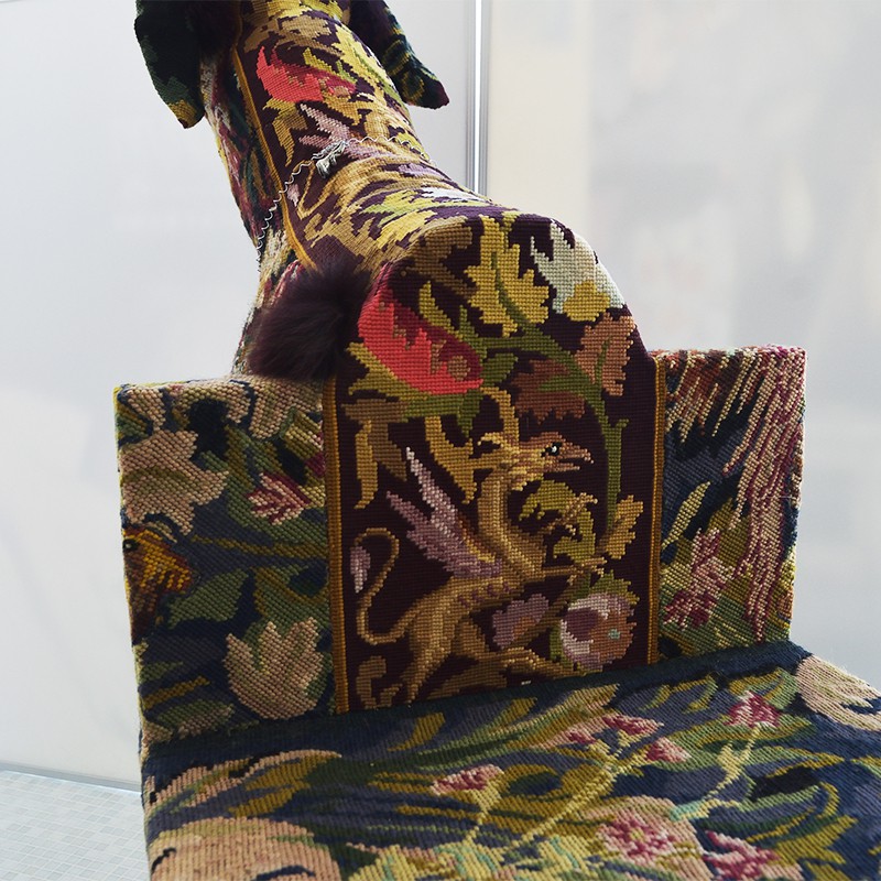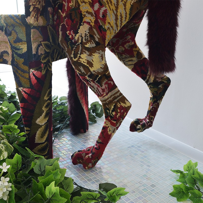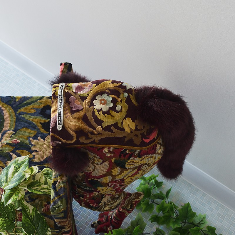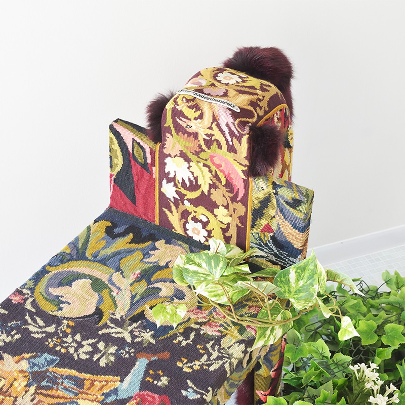 『FREDERIQUE MORREL(フレデリック・モレル)』は、亡くなった祖母のニードルワーク(針仕事)への想いから誕生しました。すべてニードルポイント刺繍(※注)のハンドメ イドで手掛けており、刺繍の色や柄は、世界中探しても同じものは他にない全てが1点ものの作品です。 フレデリック・モレルの作品それぞれには、深い意味とメッセージが込められており、例えば、刺繍で扉を描けば「人生の半分を通り過ぎた 」という意味が込められていたり、別の作品では愛と求愛がテーマだったり。避けては通れない人類と自然の関わりや、人間や動物にとっての幸福について追及 し、作品を通して「伝えたいメッセージを表現する」という、あたらしい創造に挑戦し続けました。