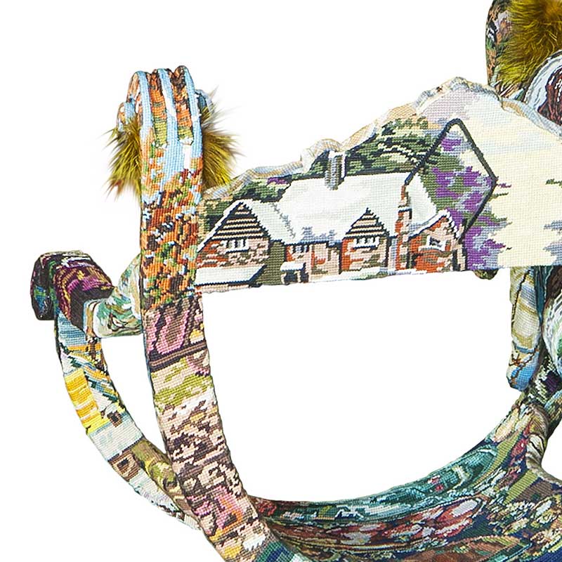『FREDERIQUE MORREL(フレデリック・モレル)』は、亡くなった祖母のニードルワーク(針仕事)への想いから誕生しました。すべてニードルポイント刺繍(※注)のハンドメ イドで手掛けており、刺繍の色や柄は、世界中探しても同じものは他にない全てが1点ものの作品です。 フレデリック・モレルの作品それぞれには、深い意味とメッセージが込められており、例えば、刺繍で扉を描けば「人生の半分を通り過ぎた 」という意味が込められていたり、別の作品では愛と求愛がテーマだったり。避けては通れない人類と自然の関わりや、人間や動物にとっての幸福について追及 し、作品を通して「伝えたいメッセージを表現する」という、あたらしい創造に挑戦し続けました。