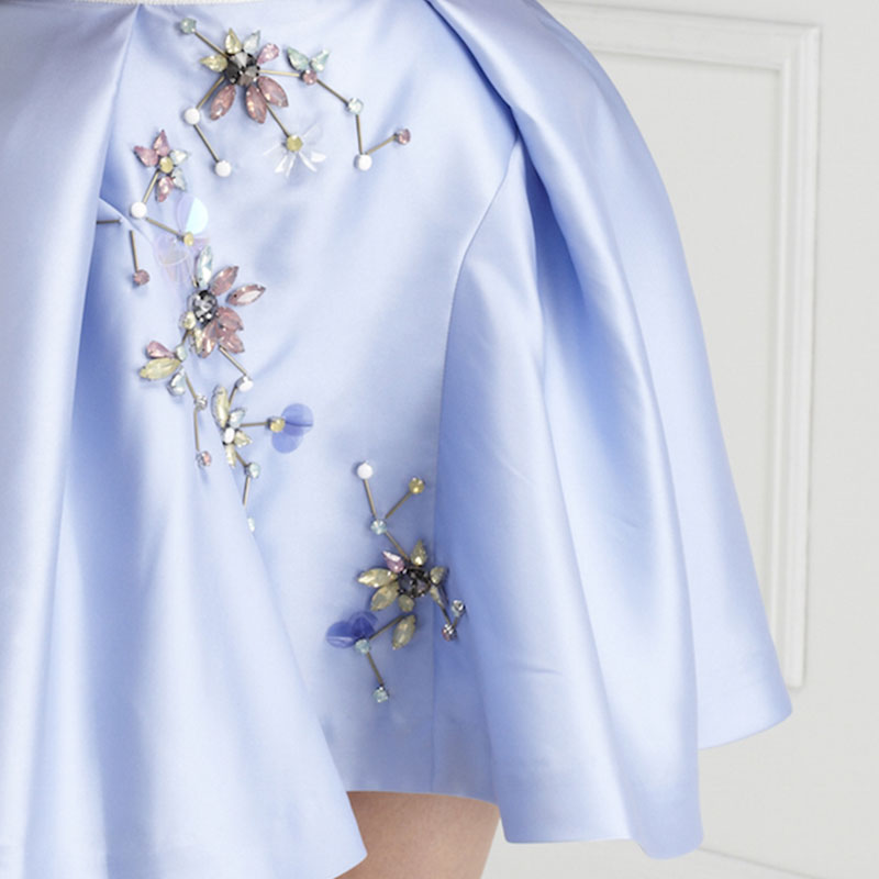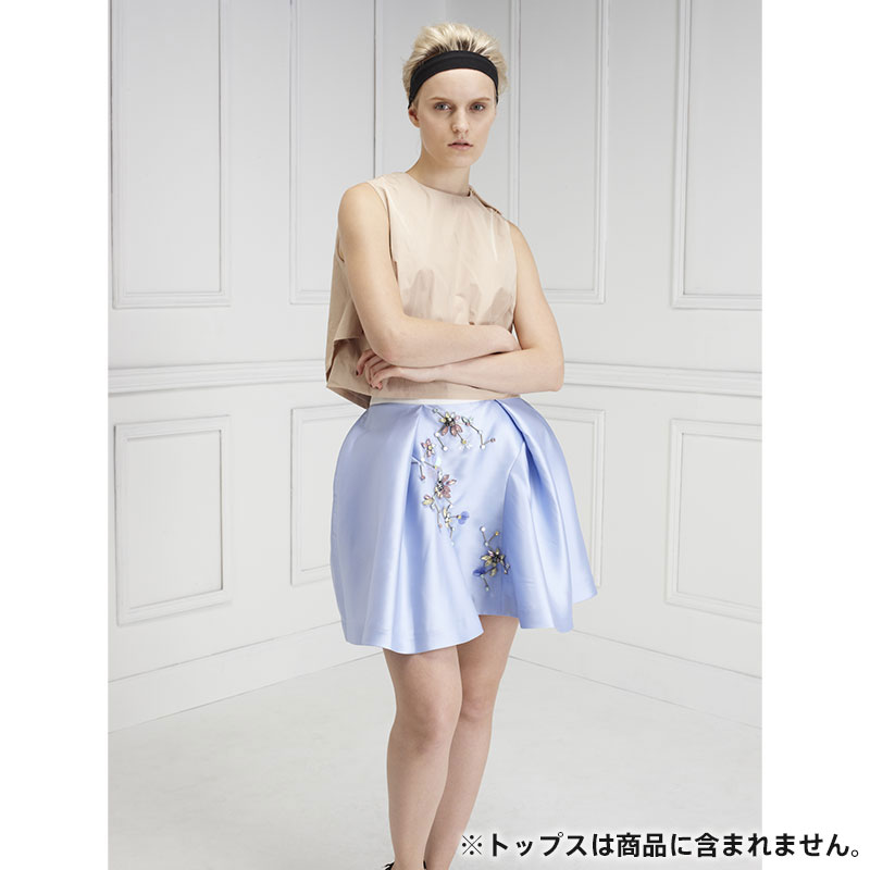 • タフタカラプリートショートスカートウィズフローラルリンクエンブロイダリー