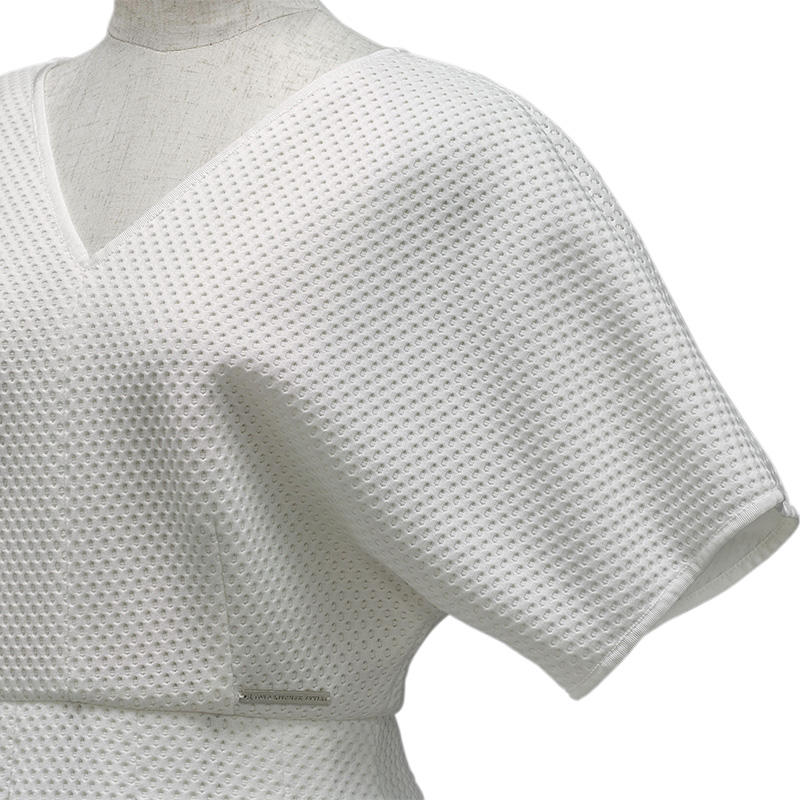 厚手の白メッシュ生地を使用したワンピースです。白いメッシュ生地とボリューム感が印象的です。