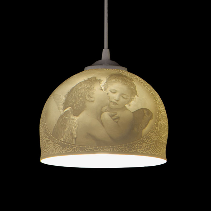 繊細なレリーフが浮かび上がるペンダントランプ