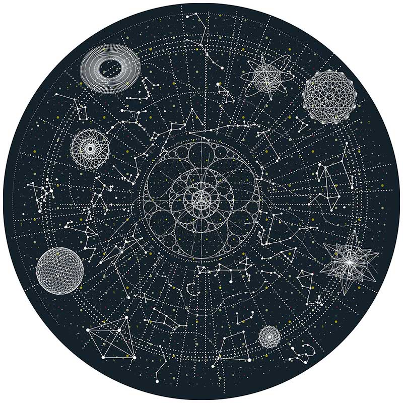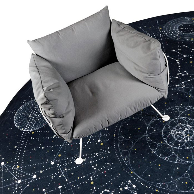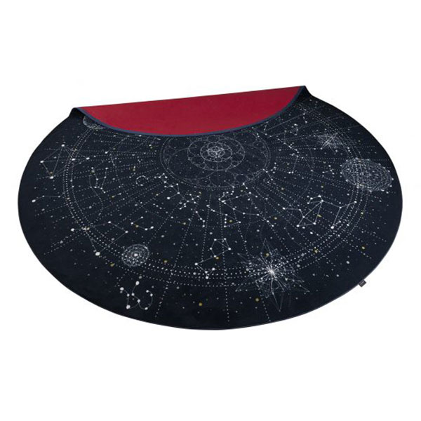 エドワード・ヴァン・フリートがデザインしたミッドナイト・スカイ・ブルーの円形カーペット「セレシャル|Celestial」。