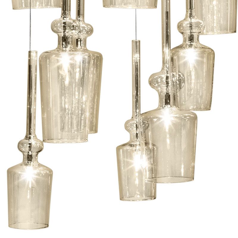ガラスシェードを12個吊り下げた照明