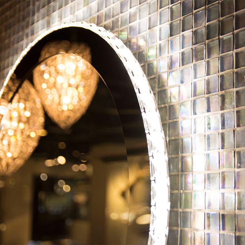 カットガラスのオーナメントが輝くミラー