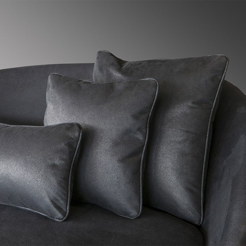 ラブソファは、座った時の目線の位置まで計算してデザインされ、この丸みを帯びたフォルムによって、自然と弧を描くように配置でき、見つめ合うように視線が交わり会話をはずませます。