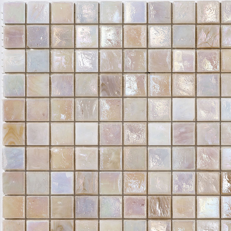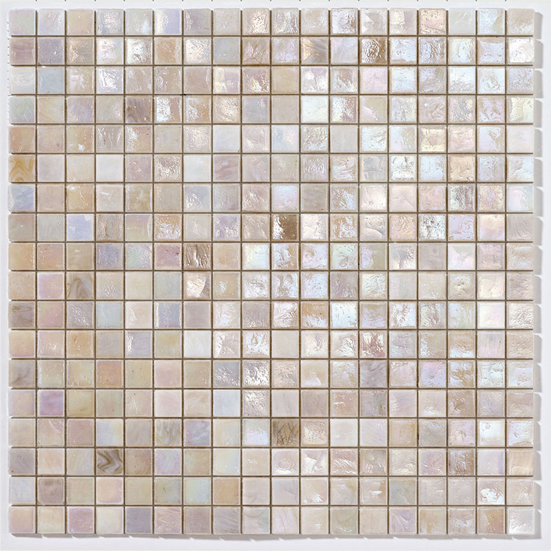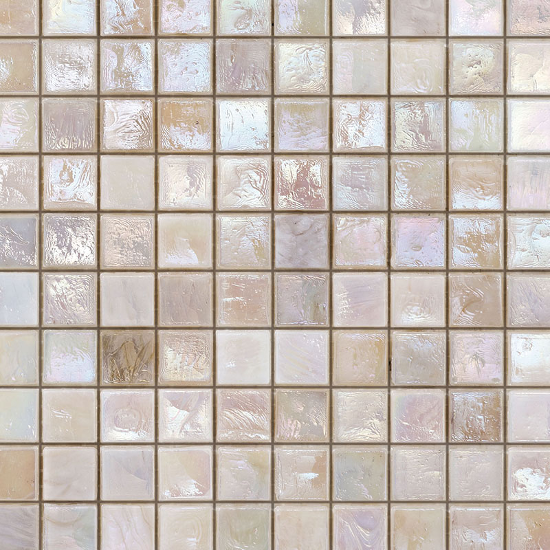 イタリアラヴェンナの工房で製作された、ベネツィアンガラスのモザイクタイルです。光の当たる角度や見る角度によって表情が美しく変化し、真珠のように虹色の輝きを放ちます。
