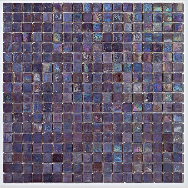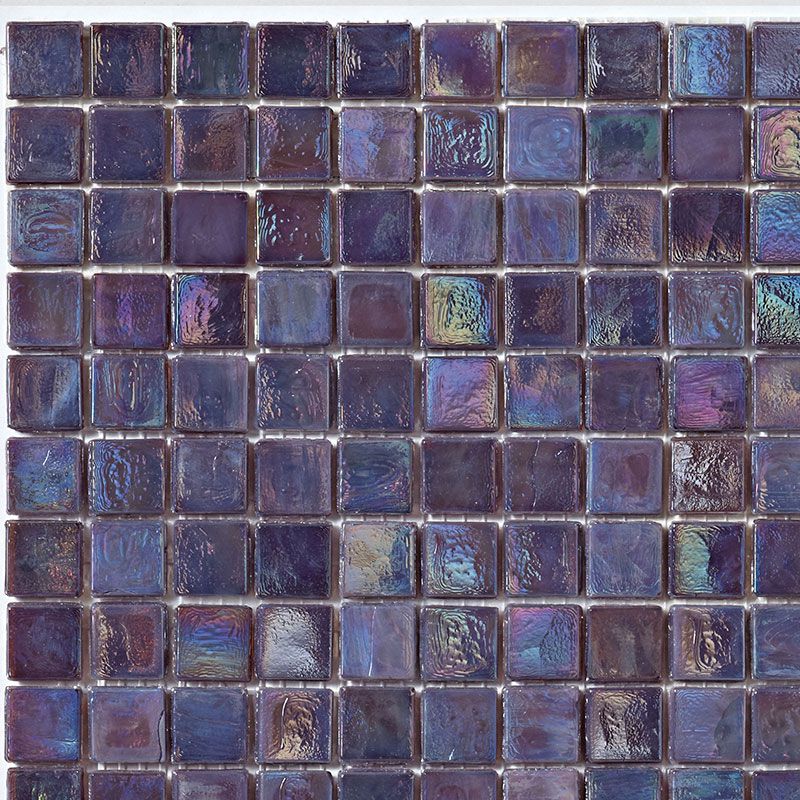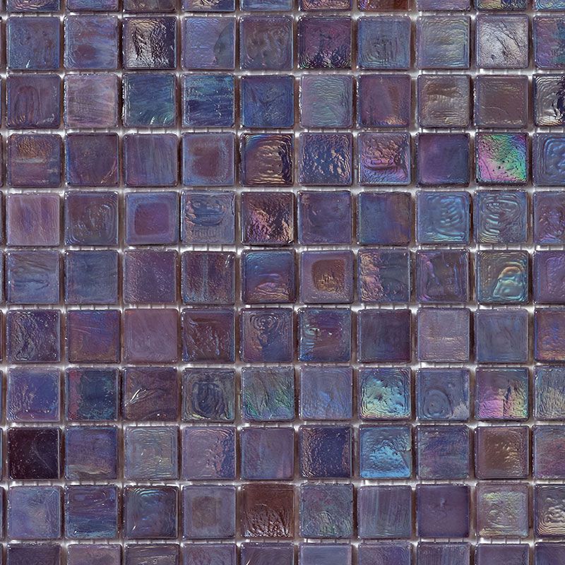 イタリアラヴェンナの工房で製作された、ベネツィアンガラスのモザイクタイルです。光の当たる角度や見る角度によって表情が美しく変化し、真珠のように虹色の輝きを放ちます。ツツジの名が示すように、深いパープルは一面の花畑のよう。