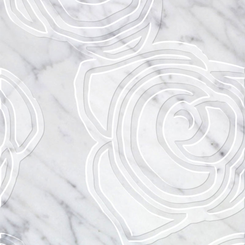 天然大理石をつかった大判サイズのタイルシリーズ。 石目文様を活かした一般的な大理石とは一線を画す、表面に深く彫り込まれた凸凹デザインが特徴です。