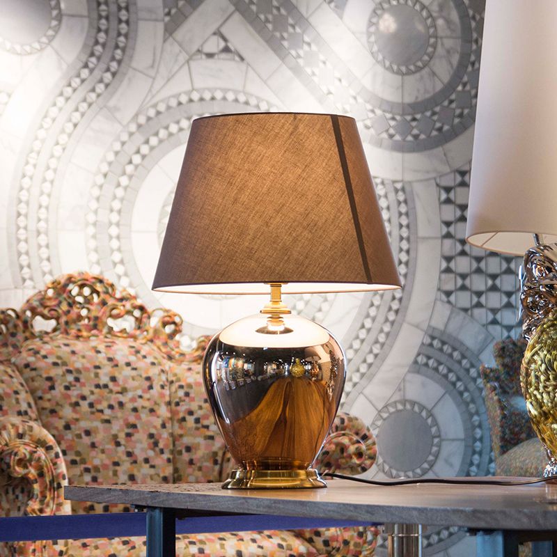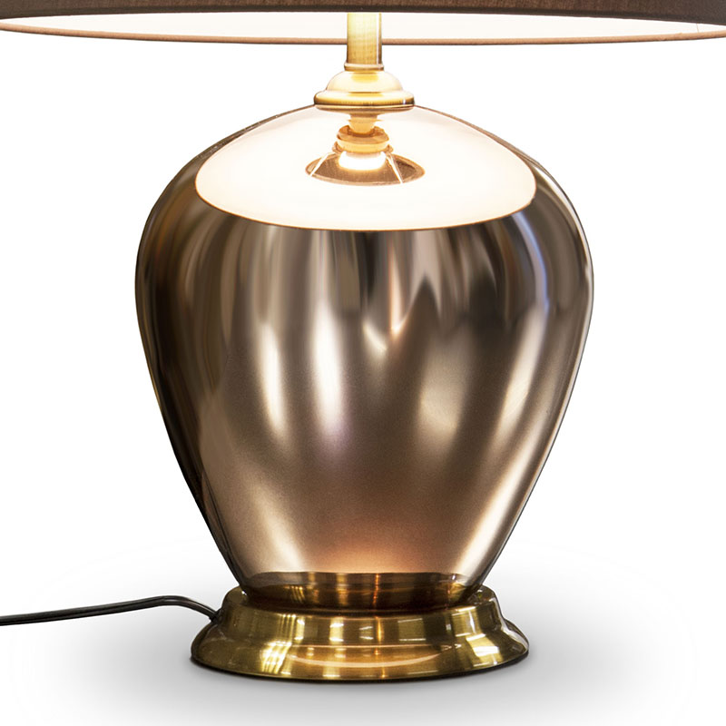 ガラス製スタンドに落ち着いたコーヒーカラーのシェードが付いたテーブル置きタイプのLED照明です。電源コードには中間スイッチが付いています。