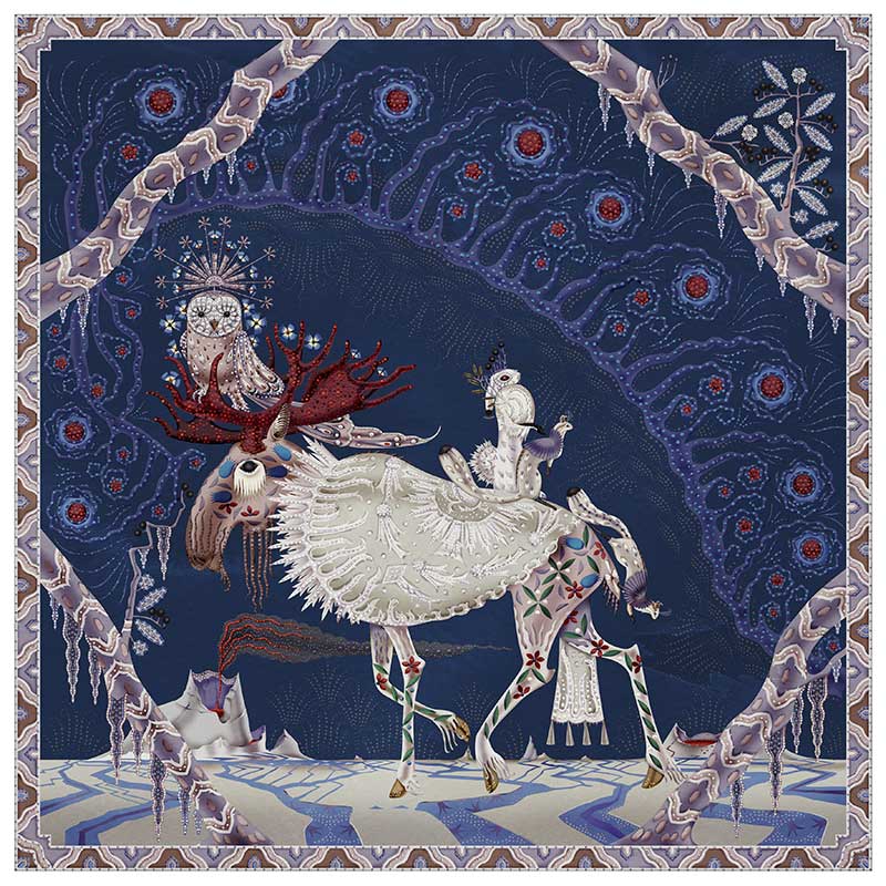 ポーラービザンティンは、フィンランド人著者Rosa Liksom|ロサ リクソムが賞を受賞した元の詩的ストーリーに基づいた一連のカーペットです。フィンランドのイラストレーター、Klaus Haapaniemi|クラウス・ヘアパミエミとともに、物語と幻想的な北極の世界をオペラに計画し、ステージングしています。