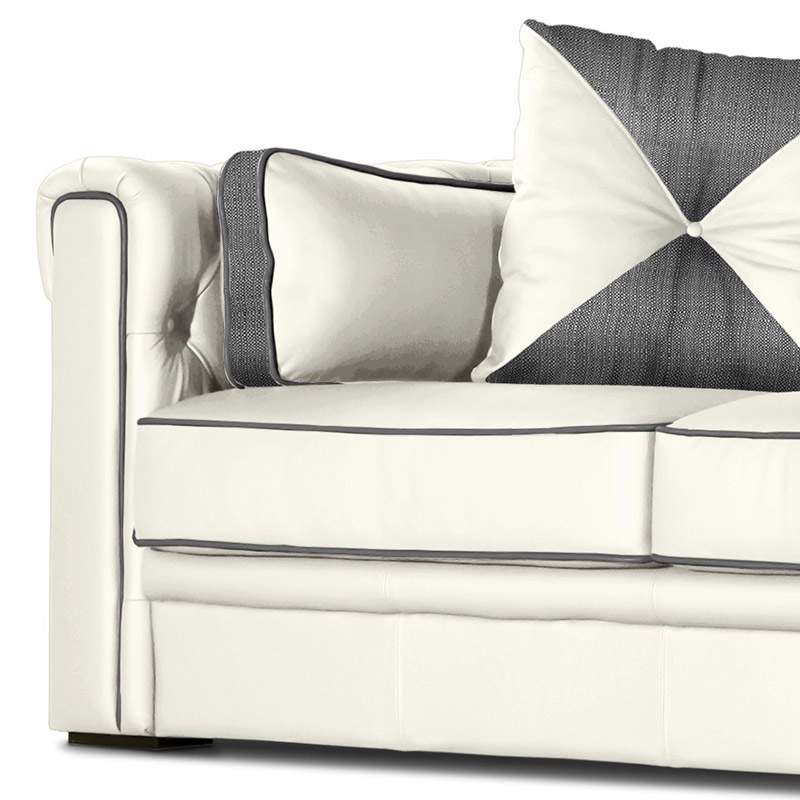 アクセントにもなっている背もたれのボタンや、肘や背中が当たる上面の部分のラウンドフォルムは伝統的なデザインです。バイカラーのパイピングで強調したスクエアなフォルムが、伸びやかでモダンなデザインに仕上げています。肘と背もたれが低く、適度な張りを保った座面は、座るというよりもソファの上で過ごすことを想定した仕様。お部屋の様々な方向へコミュニケーションが取りやすいかたちでもあります。