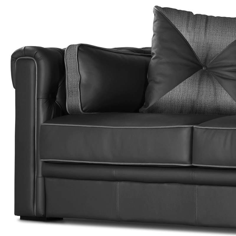 アクセントにもなっている背もたれのボタンや、肘や背中が当たる上面の部分のラウンドフォルムは伝統的なデザインです。バイカラーのパイピングで強調したスクエアなフォルムが、伸びやかでモダンなデザインに仕上げています。肘と背もたれが低く、適度な張りを保った座面は、座るというよりもソファの上で過ごすことを想定した仕様。お部屋の様々な方向へコミュニケーションが取りやすいかたちでもあります。