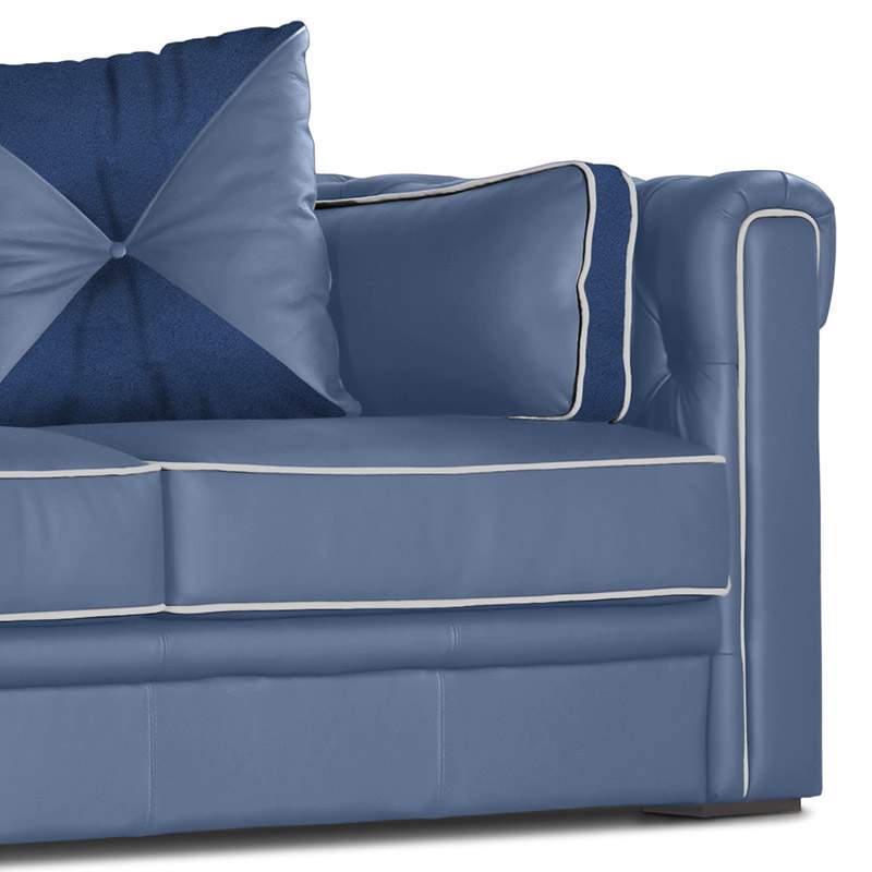 アクセントにもなっている背もたれのボタンや、肘や背中が当たる上面の部分のラウンドフォルムは伝統的なデザインです。バイカラーのパイピングで強調したスクエアなフォルムが、伸びやかでモダンなデザインに仕上げています。肘と背もたれが低く、適度な張りを保った座面は、座るというよりもソファの上で過ごすことを想定した仕様。お部屋の様々な方向へコミュニケーションが取りやすいかたちでもあります。
