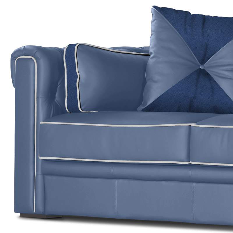 アクセントにもなっている背もたれのボタンや、肘や背中が当たる上面の部分のラウンドフォルムは伝統的なデザインです。バイカラーのパイピングで強調したスクエアなフォルムが、伸びやかでモダンなデザインに仕上げています。肘と背もたれが低く、適度な張りを保った座面は、座るというよりもソファの上で過ごすことを想定した仕様。お部屋の様々な方向へコミュニケーションが取りやすいかたちでもあります。