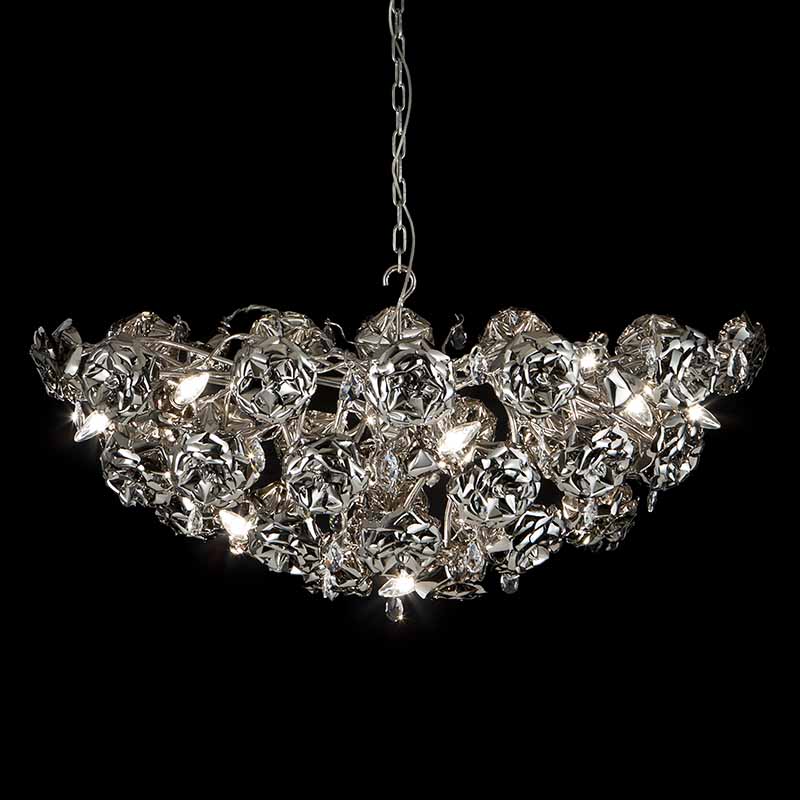 ニッケルメッキの薔薇の花束にスワロフスキークリスタルオーナメントを合わせたシャンデリア。