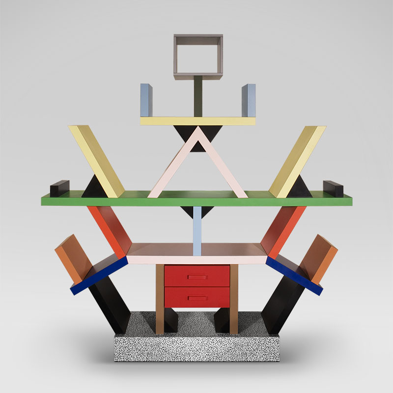 ソットサスがメンフィスで手掛けたシンボリックな作品。革新的で自由な表現にその思想が体現されている。各国美術館にも所蔵されるデザイン史上の名作。