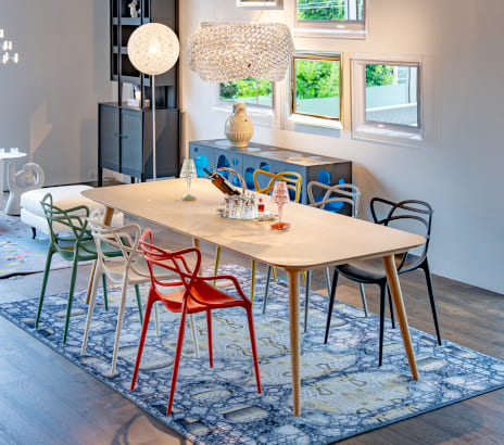 一般の住宅なら、ダイニング、デスク、ドレッサー、エントランスなど活躍の場は様々、コントラクトユースならカフェやレストラン、会議室や多くの人が集まる場所など、世界中の様々な場所でマスターズは選ばれています。