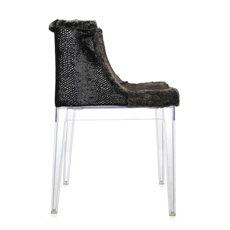 ポリカーボネート製の軽快なフレームとKravitz デザインチームとLenny Kravitzが手がけた衣装をまとったチェア。直線的で調和のとれたフォルムで座り心地も快適です。アメリカのスーパースター、Lenny Kravitzのエスプリを見事に反映し、マドモワゼルのオートクチュール風エレガンスとロックで野性的な雰囲気の張り地を組み合わせた3つのバージョンで展開します。