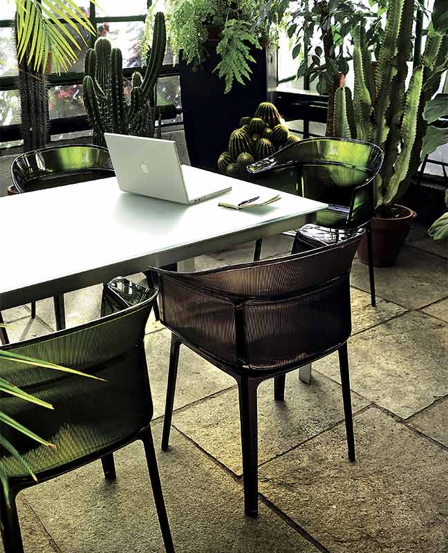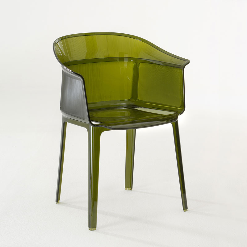 Bouroullec兄弟がKartellのために、コンセプチュアルで洗練された透明ポリカーボネート製のアームチェアPapyrusをデザイン。シンプル、洗練、優美、そしてややレトロな雰囲気が見事に融合されたPapyrusは、昔ながらの単純な構造の籐イスからヒントを得て造られました。半透明で丸みがあり優しく包み込むような背もたれの表面には、細い縦縞模様が施され、軽量なのに座り心地は抜群です。