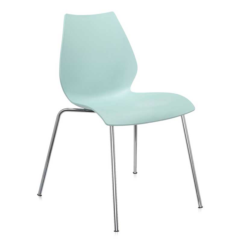 ハワイのマウイ島火山をイメージしてデザインされたチェアです。シートと背もたれが一体となったボディは強度と耐久性に優れているポリプロピレンが使用されており、クロームメッキ仕上げのスチール製フレームに固定されています。エレガントなシルエットでダイニングルームや書斎などのホームシーンから、オフィスやレストランなどコントラクトシーンにもぴったりです。コンパクト設計により7脚までスタッキング可能です。