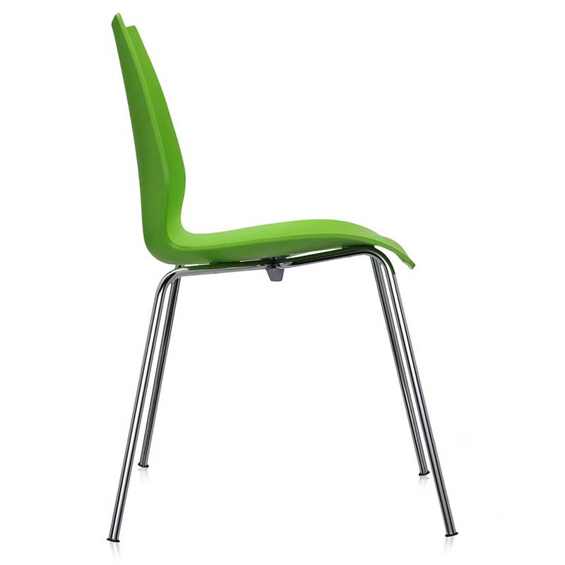 ハワイのマウイ島火山をイメージしてデザインされたチェアです。シートと背もたれが一体となったボディは強度と耐久性に優れているポリプロピレンが使用されており、クロームメッキ仕上げのスチール製フレームに固定されています。エレガントなシルエットでダイニングルームや書斎などのホームシーンから、オフィスやレストランなどコントラクトシーンにもぴったりです。コンパクト設計により7脚までスタッキング可能です。