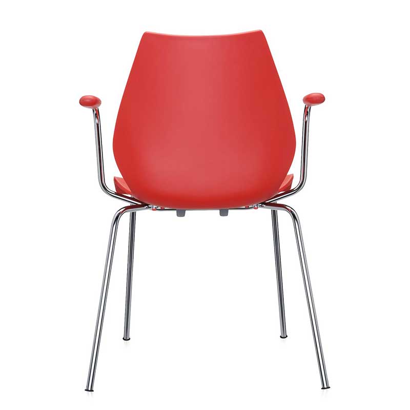ハワイのマウイ島火山をイメージしてデザインされたチェアです。シートと背もたれが一体となったボディは強度と耐久性に優れているポリプロピレンが使用されており、クロームメッキ仕上げのスチール製フレームに固定されています。エレガントなシルエットでダイニングルームや書斎などのホームシーンから、オフィスやレストランなどコントラクトシーンにもぴったりです。コンパクト設計により5脚までスタッキング可能です。