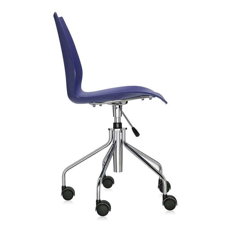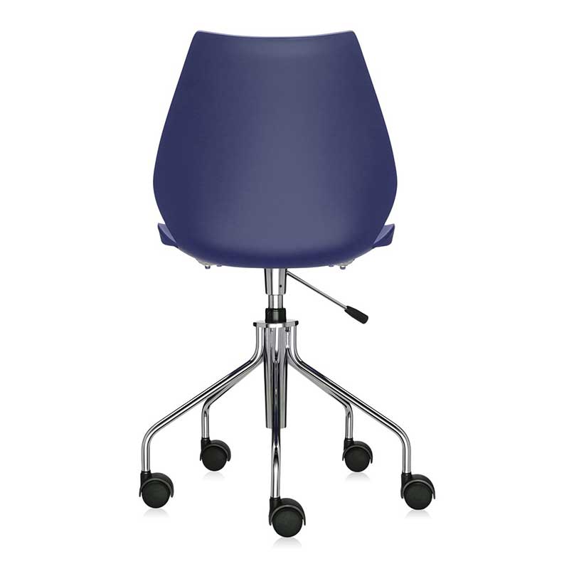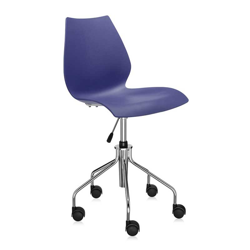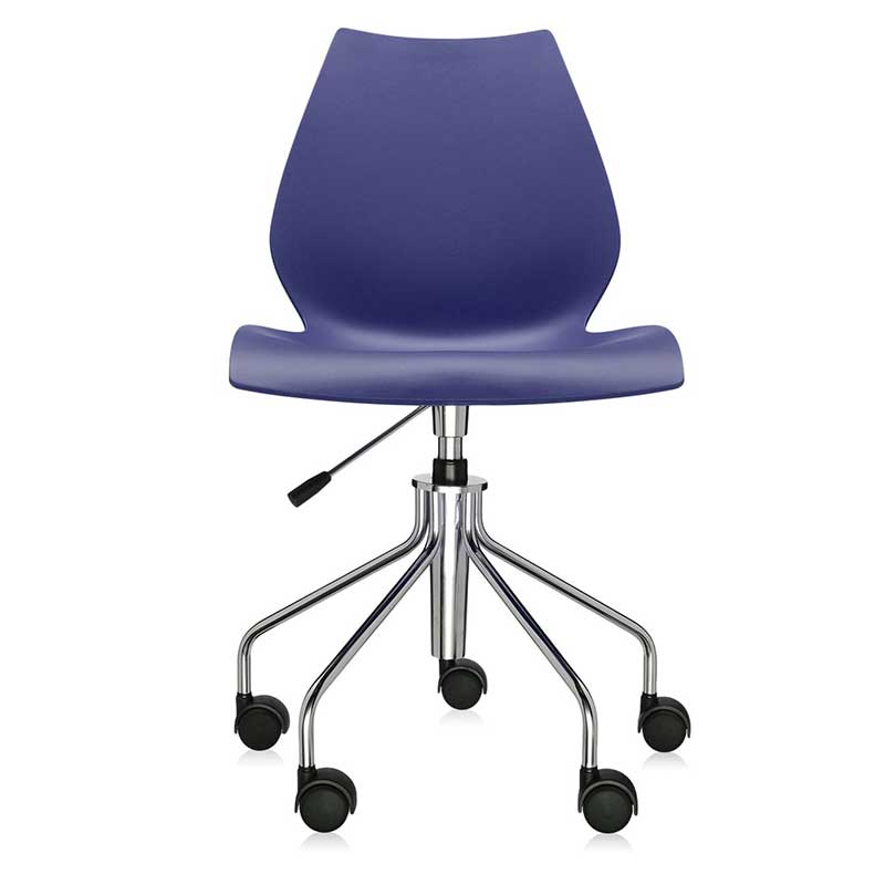 ハワイのマウイ島火山をイメージしてデザインされたキャスター付昇降チェアです。シートと背もたれが一体となったボディは強度と耐久性に優れているポリプロピレンが使用されており、クロームメッキ仕上げのスチール製フレームに固定されています。軽く、座り心地も抜群で、書斎やオフィスなどにぴったりです。