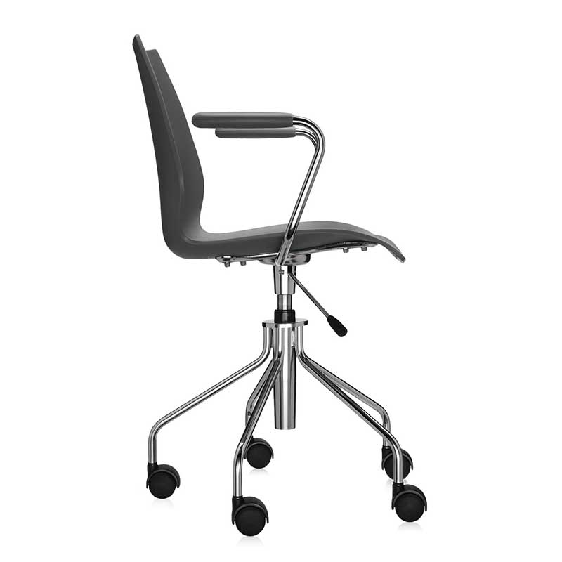ハワイのマウイ島火山をイメージしてデザインされたキャスター付昇降チェアです。シートと背もたれが一体となったボディは強度と耐久性に優れているポリプロピレンが使用されており、クロームメッキ仕上げのスチール製フレームに固定されています。軽く、座り心地も抜群で、書斎やオフィスなどにぴったりです。