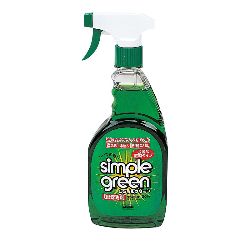 ・フード、コンロ周り等、油汚れがひどい場所には水で 5倍程度に薄めたシンプルグリーンを吹きかけ 2 ?3 分間待ちます。その後スポンジ等で汚れをこすり落とし、水で洗い流します。後は乾い布で水気をとります。