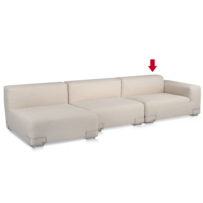 シートは2つの異なるサイズ、88と114センチ、および、アームがついた2つの異なる高さで構成されています。ソファには3つの異なるモデル、背もたれのあるタイプ、右アームのタイプ、左アームのタイプがあります。同じ生地のクッションを追加することで、座り心地を調整することができます。