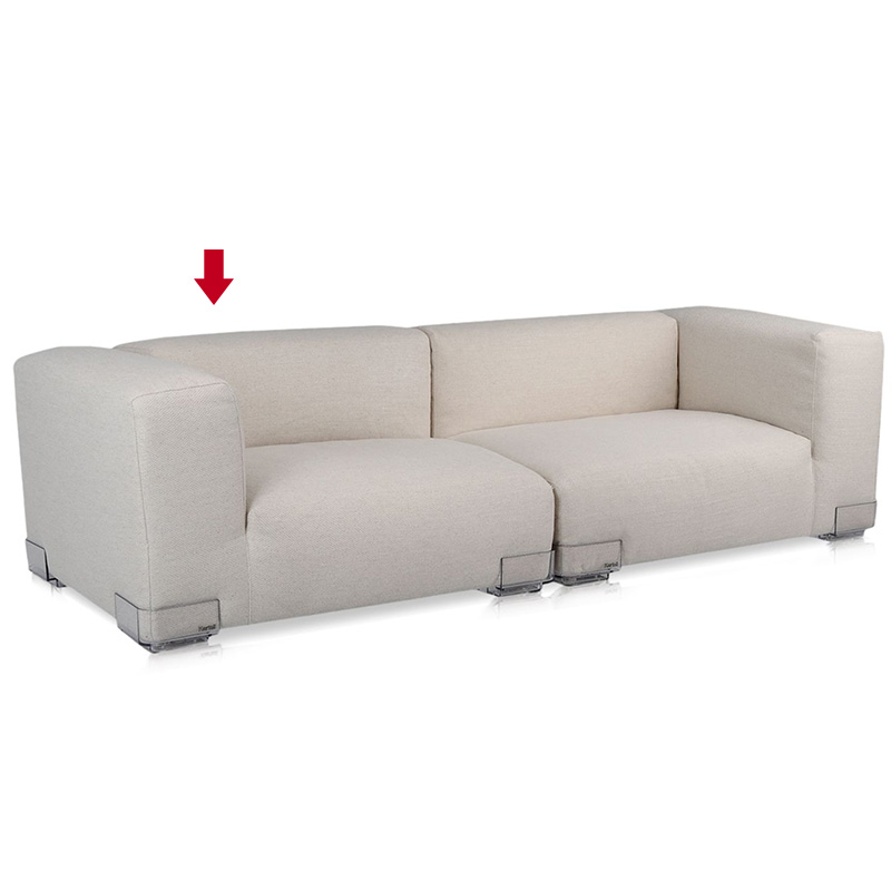 シートは2つの異なるサイズ、88と114センチ、および、アームがついた2つの異なる高さで構成されています。ソファには3つの異なるモデル、背もたれのあるタイプ、右アームのタイプ、左アームのタイプがあります。同じ生地のクッションを追加することで、座り心地を調整することができます。