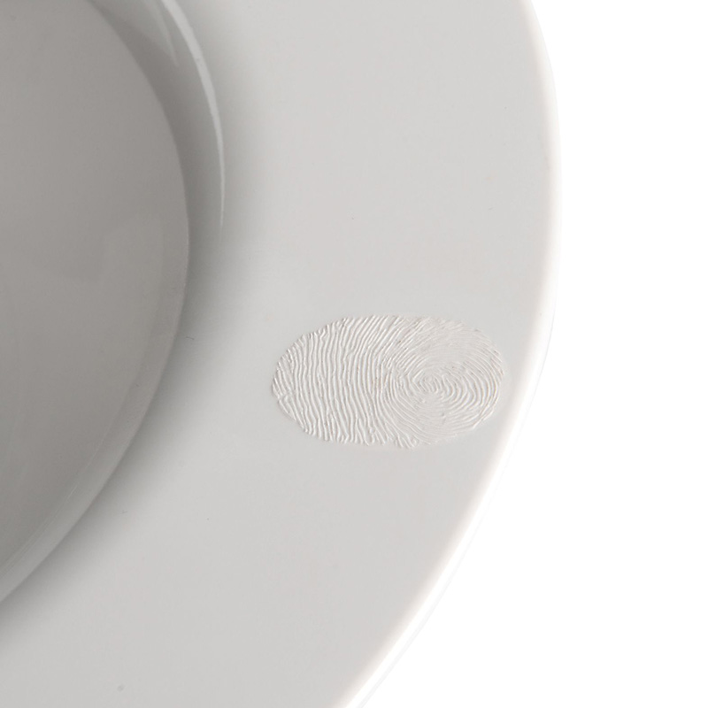 このコレクションの特徴は、プレートの縁に施されたエンボス加工のスタンプです。これは料理を提供するということを中心にすべてを展開するという、シェフの料理に対する特別なビジョンを反映したものです。