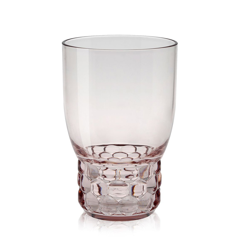 クリスタルガラスやダイヤモンドは、カッティングによって輝きや印象が変わります。このジェリーズも、表面のテクスチャ―デザインへのあくなき研究によって、今までのプラスチック製の食器では考えられなかった、驚きの美しさを実現させました。