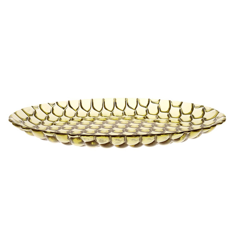 クリスタルガラスやダイヤモンドは、カッティングによって輝きや印象が変わります。このジェリーズも、表面のテクスチャ―デザインへのあくなき研究によって、今までのプラスチック製の食器では考えられなかった、驚きの美しさを実現させました。