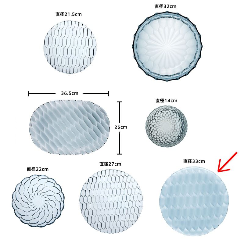 クリスタルガラスやダイヤモンドは、カッティングによって輝きや印象が変わります。このジェリーズも、表面のテクスチャ―デザインへのあくなき研究によって、今までのプラスチック製の食器では考えられなかった、驚きの美しさを実現させました。