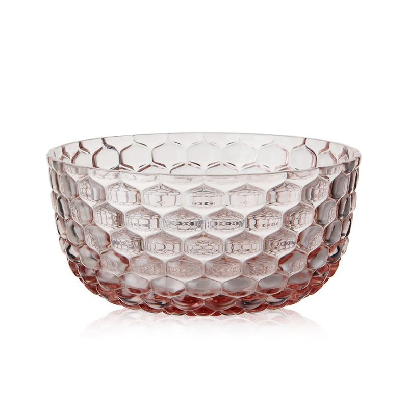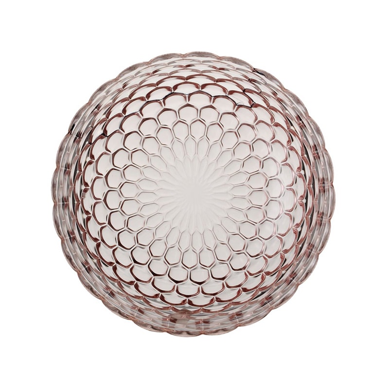 クリスタルガラスやダイヤモンドは、カッティングによって輝きや印象が変わります。このジェリーズも、表面のテクスチャ―デザインへのあくなき研究によって、今までのプラスチック製の食器では考えられなかった、驚きの美しさを実現させました。