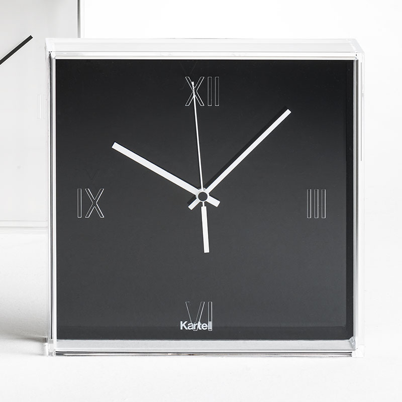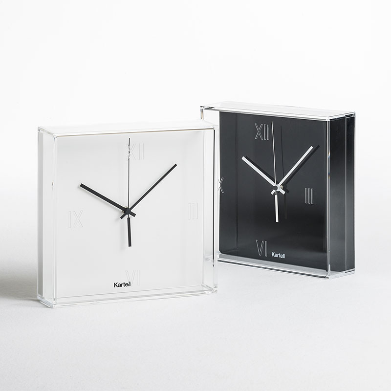 30×30cmの四角い透明の「箱」の形をしており、文字盤は平たくて、ローマ字が刻まれています。文字盤の時計・分針の鮮やかなカラーのコンビネーションにより、時計という実用品が美しいオブジェに変身しました。ティックタックは奥行きの深い時計で。光と投影が面白い視覚効果をつくりだします。