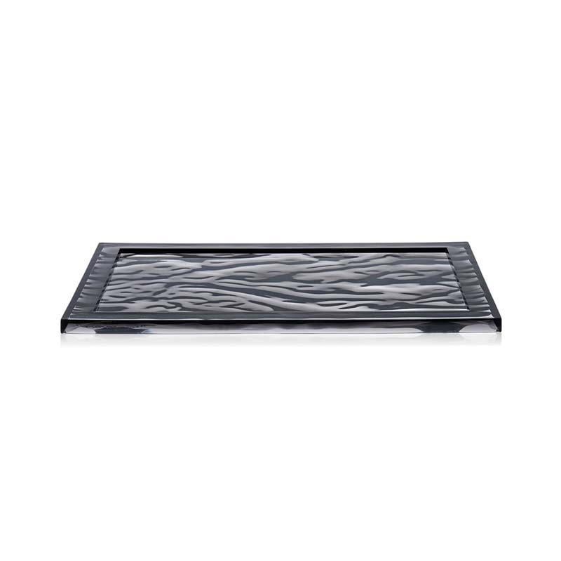 見る人や使う人に何も語りかけてこない存在感のないトレイなんて、つまらないとは思いませんか?物を運ぶためだけでパーソナリティのないトレイなんて。半透明のPMMAでできた彫刻のようなトレイは、色彩と光の輝きによりその上のグラスやカップを三次元的な不思議効果で演出します。ときに海の波、砂丘、つややかなシルク、さらには貴金属のように見えることもあります。これらの虹色のトレイは使う人に思いもよらない感動を与えるために創造されデザインされたものです。