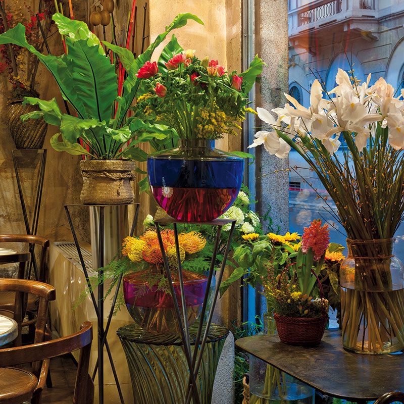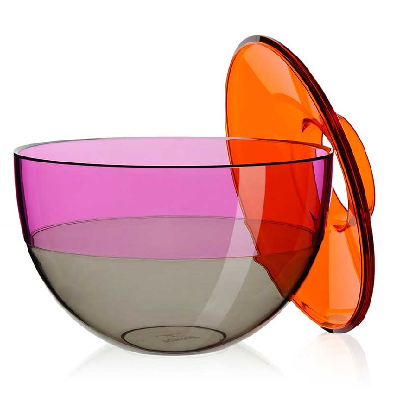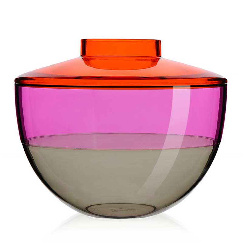 Kartellらしいポップで、異なる3つのカラーがとてもカラフル。蓋に穴があいているので、フラワーベースとして使用できます。フラワーベースとしてだけでなく、蓋を外して、お菓子や小物を入れたり、ちょっとした収納ボックスにもなります。プラスチック製品とは思えない、ムラーノの吹きガラスのようにリッチな質感を感じさせるので、装飾品としてもおすすめです。