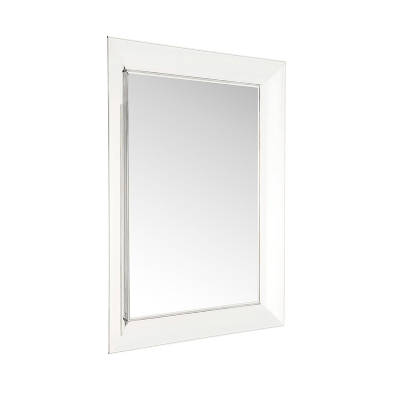 磨かれたクリスタルを連想させる壁掛けタイプのミラー。フレームの断面はカモメの翼のような丸みを帯びており、 縦横いずれにも掛けることができます。フレーム色はベネチア・ムラーノガラスの色彩に似たリッチで趣のある透明色を採用。