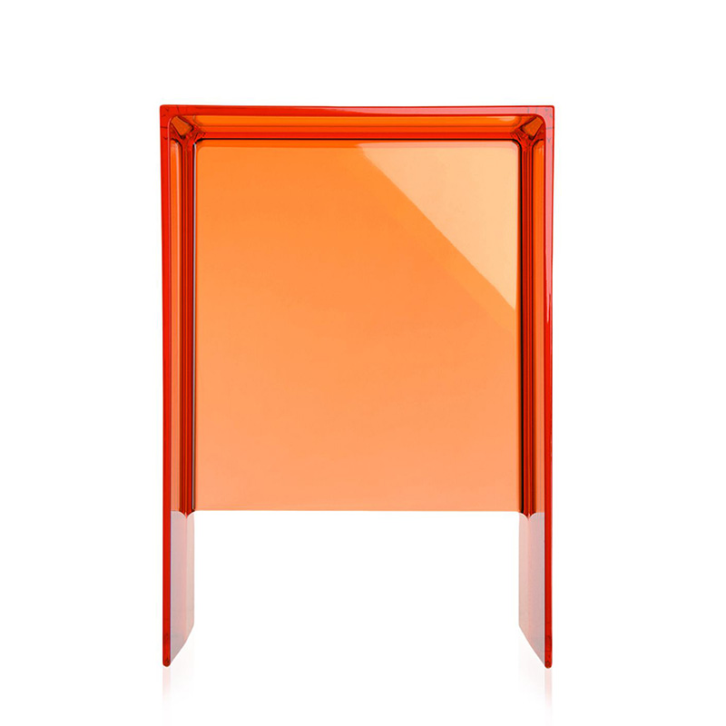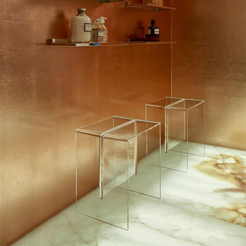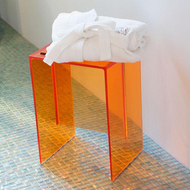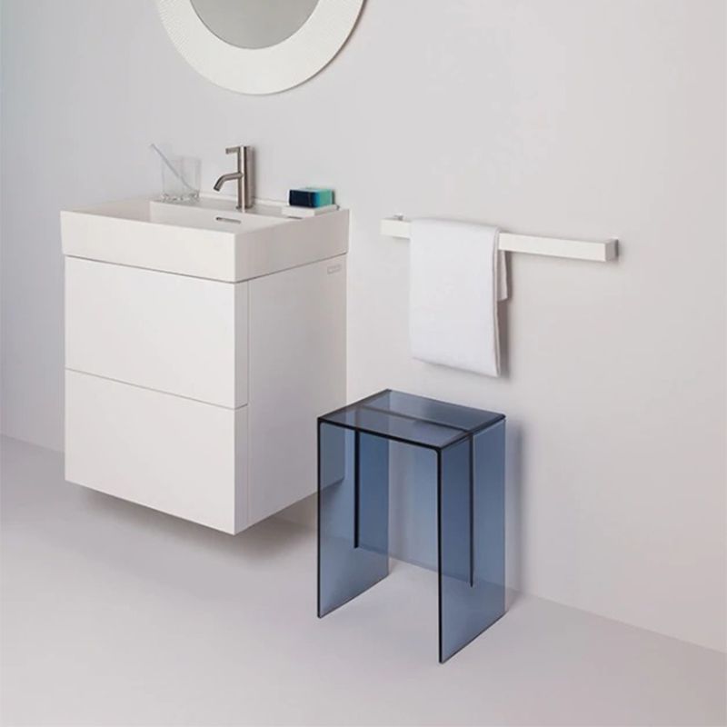 1枚板を組み合わせたようなこのスツールは、透明なプラスチックでできています。頑丈さが強調されているように充分な厚みを感じさせるデザイン、そしてサイズ感も抜群で、実用的で多目的な用途でさまざまなシーンに対応します。