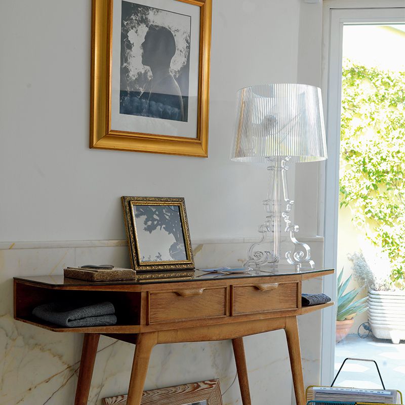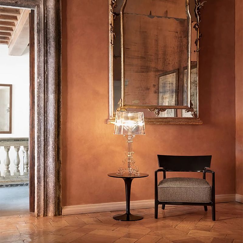 Bourgieは、まさにKartellスタイルの集結。バロック調モチーフの3枚のベースがフレームを構成します。
