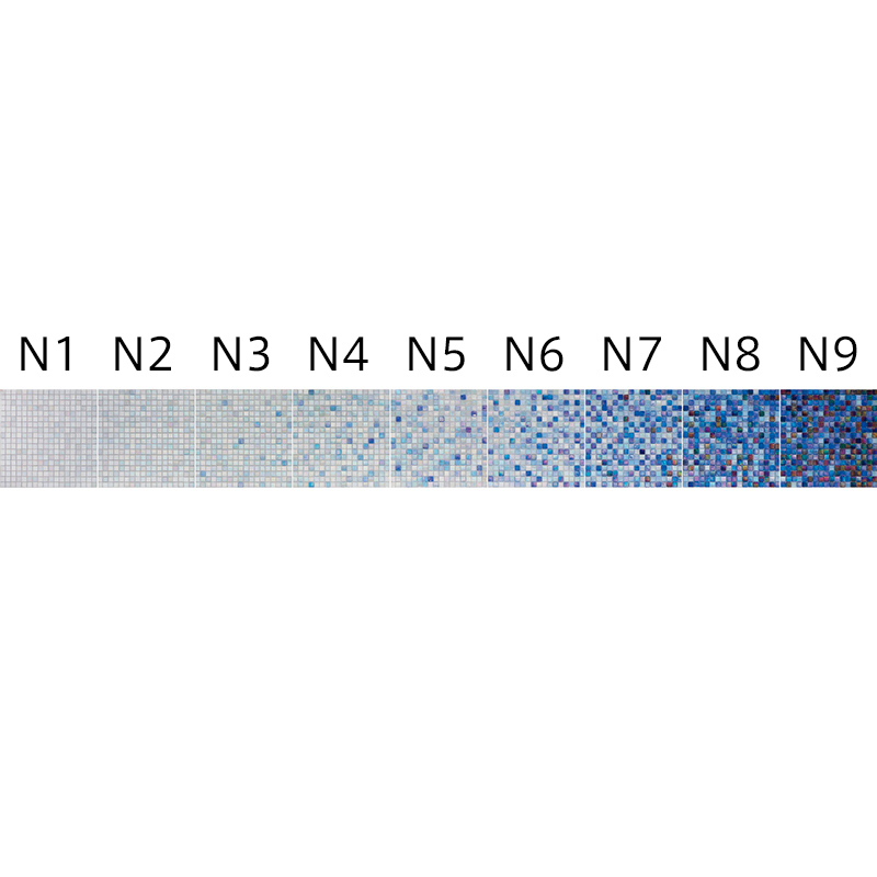 壁面に動きのある彩りを与えます。9枚で完成する美しいグラデーションパターンです。枚数を調整することで、様々な広さに対応します。