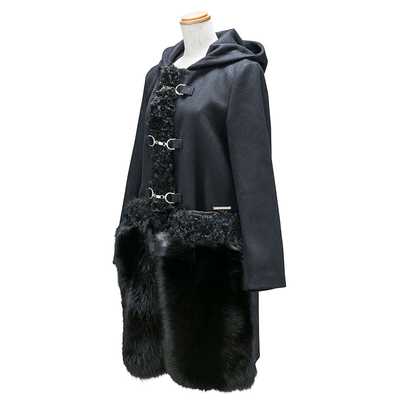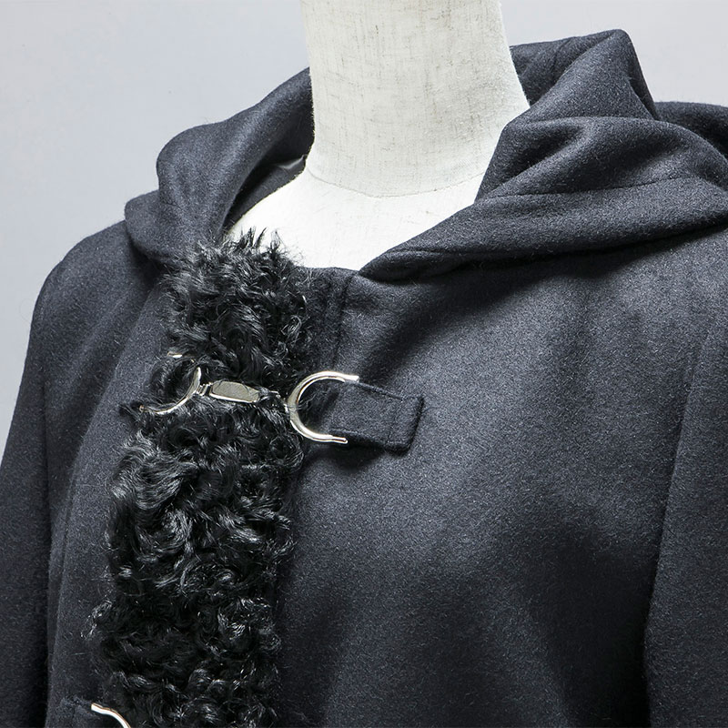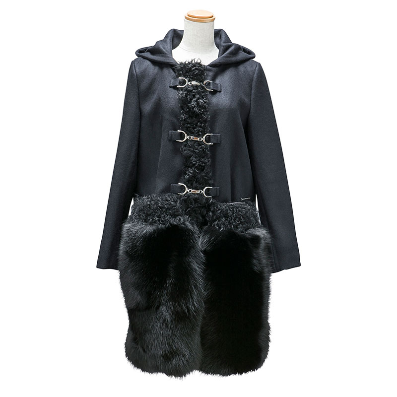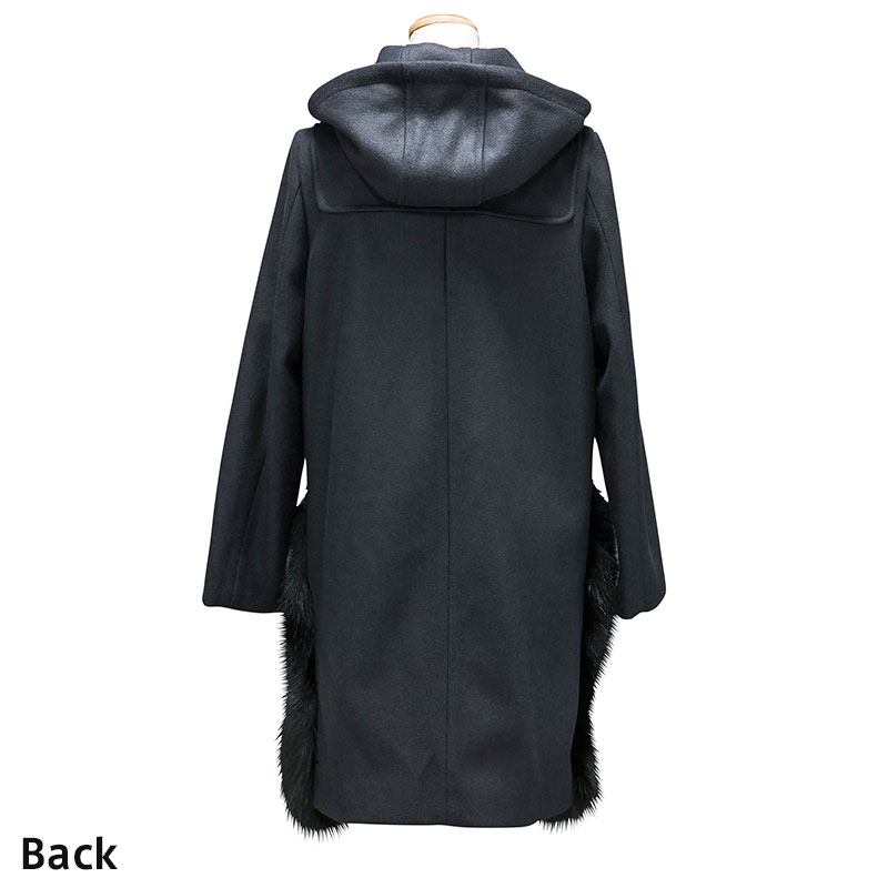 二重織の上質なウールメルトン素材をベースとしたカルガンンラムとヨーロッパ産フォックスファーが印象的なダッフルコートです。