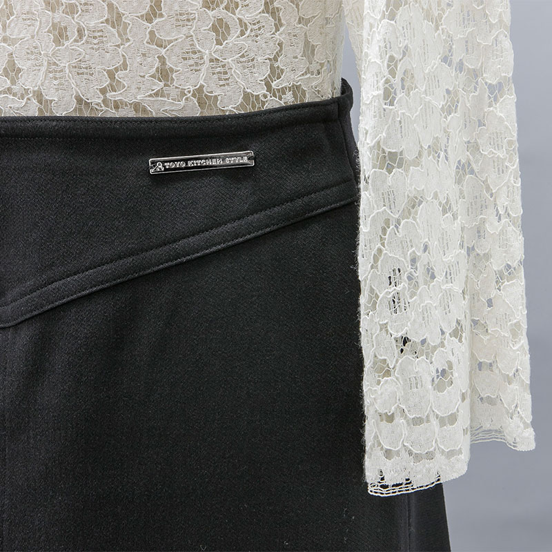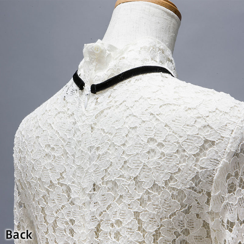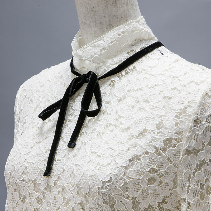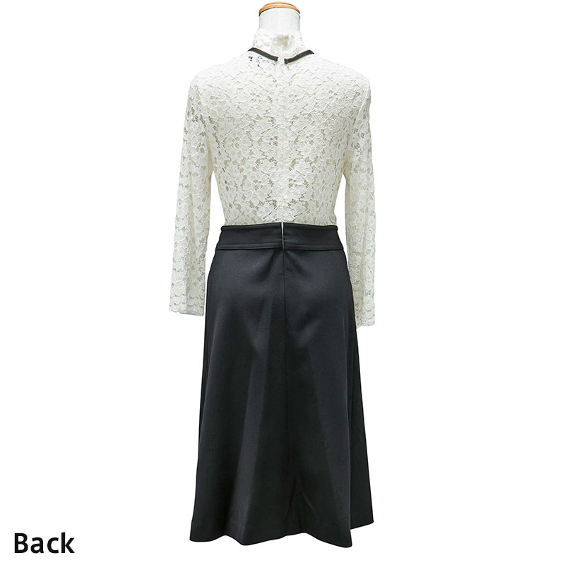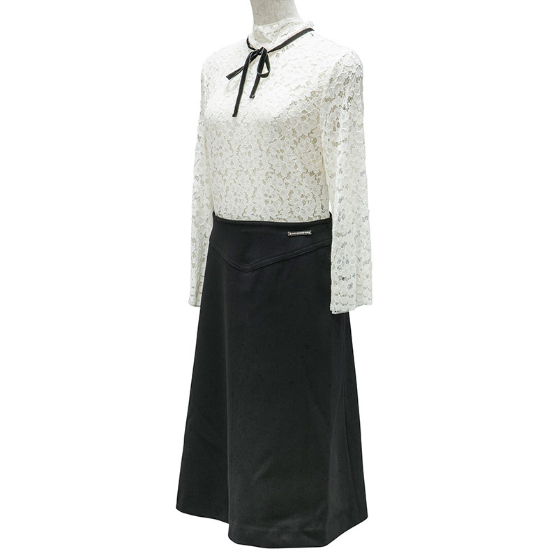 レーストップスとスカートを組み合わせたワンピースです。襟にベルベットのリボンが印象的です。